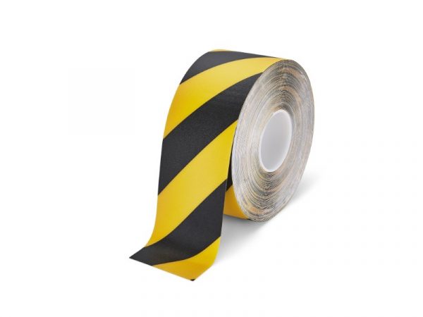 Tough 960mu thick plastic tape with a protective clear laminated topcoat. Molded surface texture for non-slip traction. UK designed and manufactured by ISO9001 certified manufacturer.