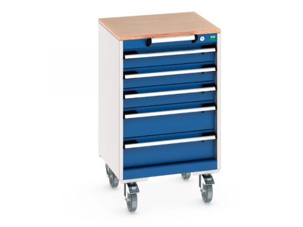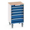 Heavy Duty Bott Drawer Table on rollers – cubio mobile cabinet with 5 drawers & multiplex worktop.WxDxH: 525x525x890mm. _SKU-40402137.11V
