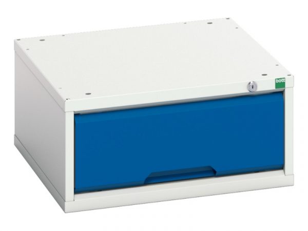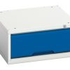 verso drawer cabinet with 1 drawer. Featuring a robust, fully welded steel housing with 100% extension drawers. Drawer configuration: 1x 175mm (75kg U.D.L.). Finished in durable powder coat paint in RAL 7035 light grey / RAL 5010 gentian blue. WxDxH: 525x550x250mm.